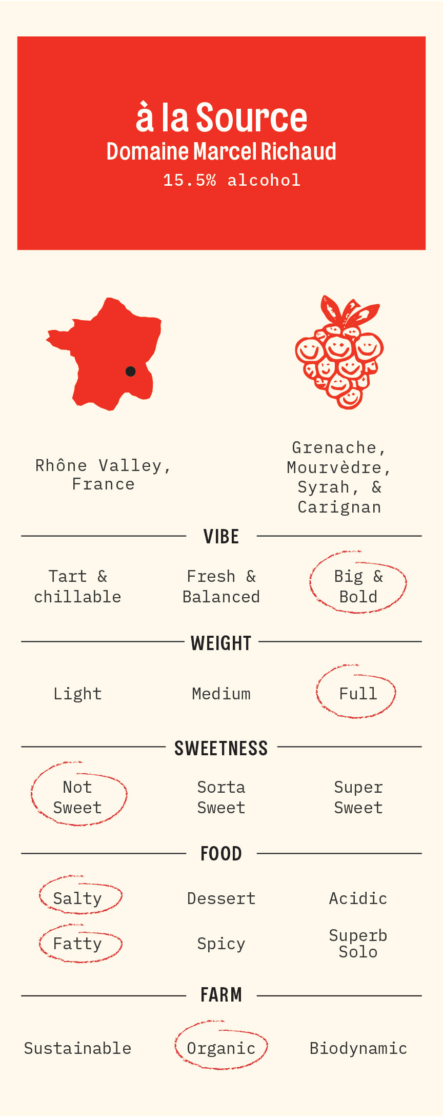 Red Blend of Grenache, Mourvèdre, Syrah, & Carignan from the Rhône Valley, France. Organic.