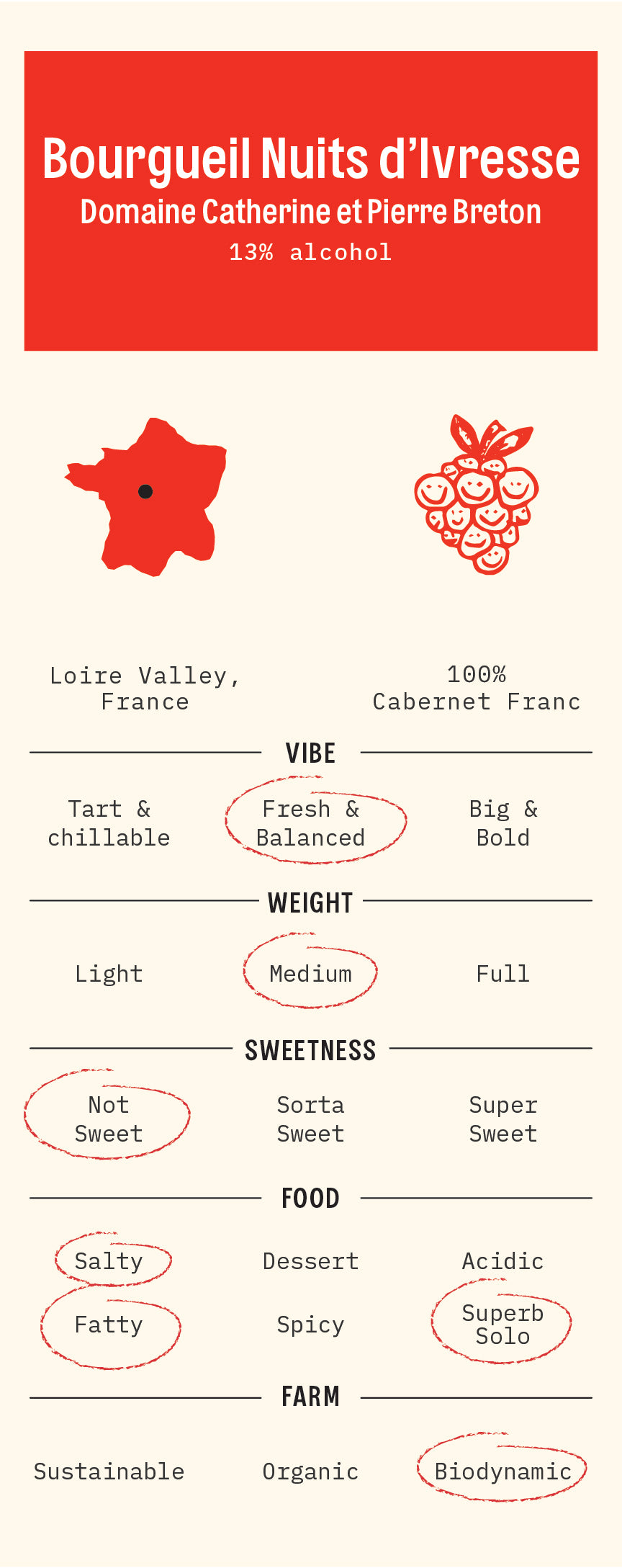 100% Cabernet Franc from Bourgueil (Loire Valley), France. Biodynamic.