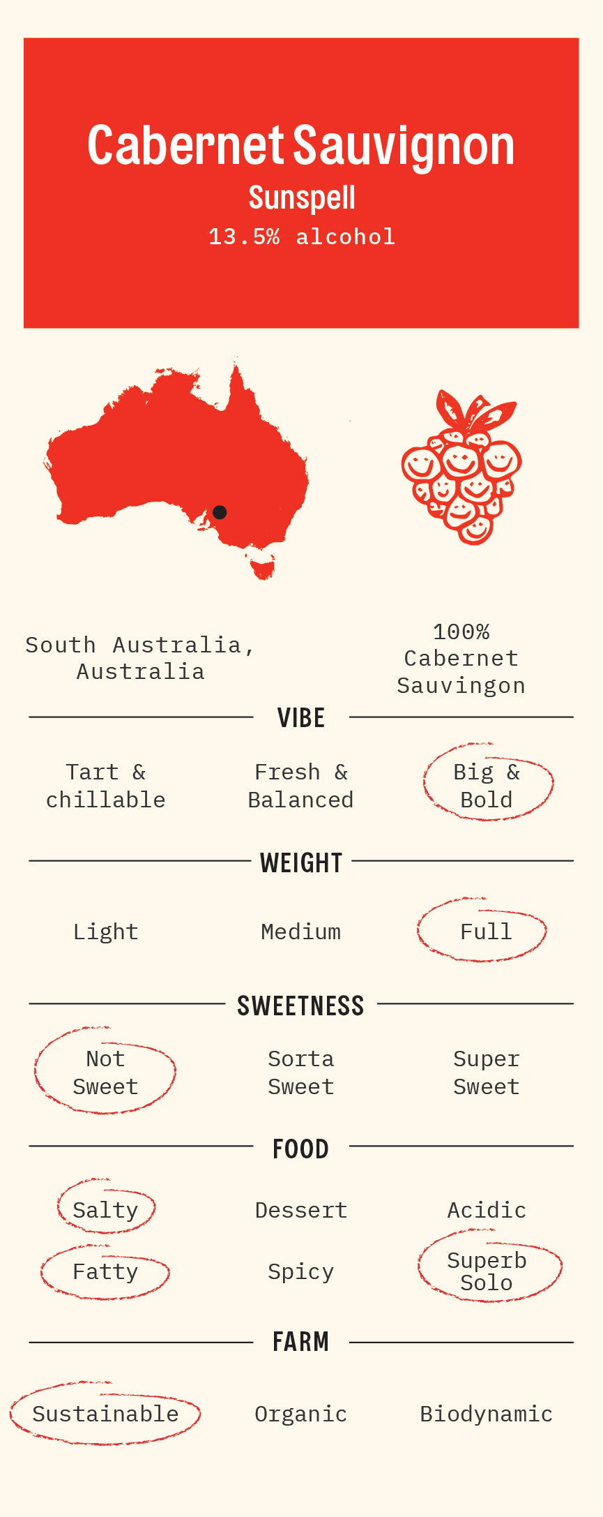 100% Cabernet Sauvignon from South Australia.