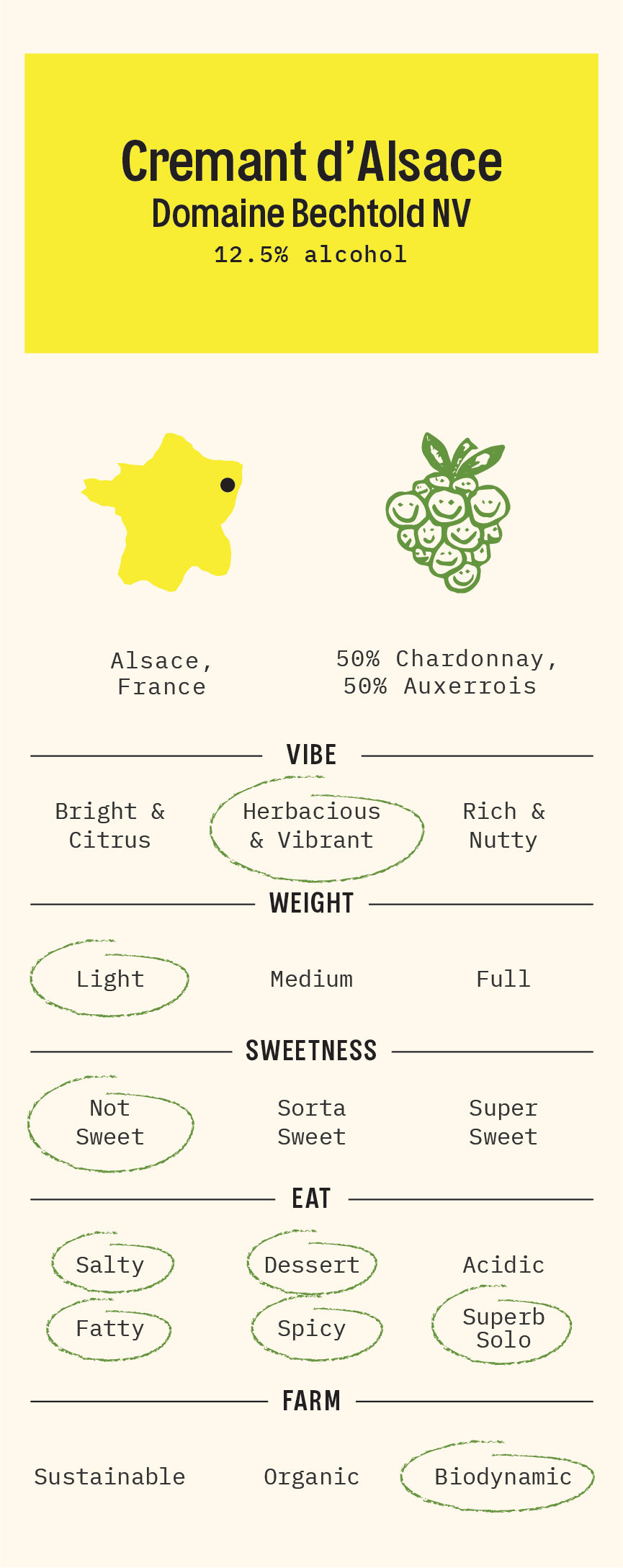 From the importer: "The soul of raciness and finesse, this wine is equal parts Chardonnay and Auxerrois. Electric and citrusy, with the earthy depth of the Auxerrois grape coming through on the palate, and firm limestone-y minerality on the finish."