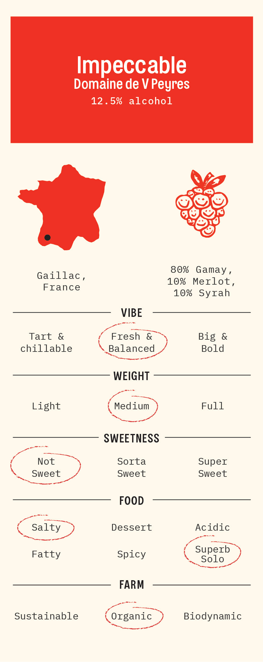 80% Gamay, 20% Merlot, & 10% Syrah from Gaillac, France. Organic.