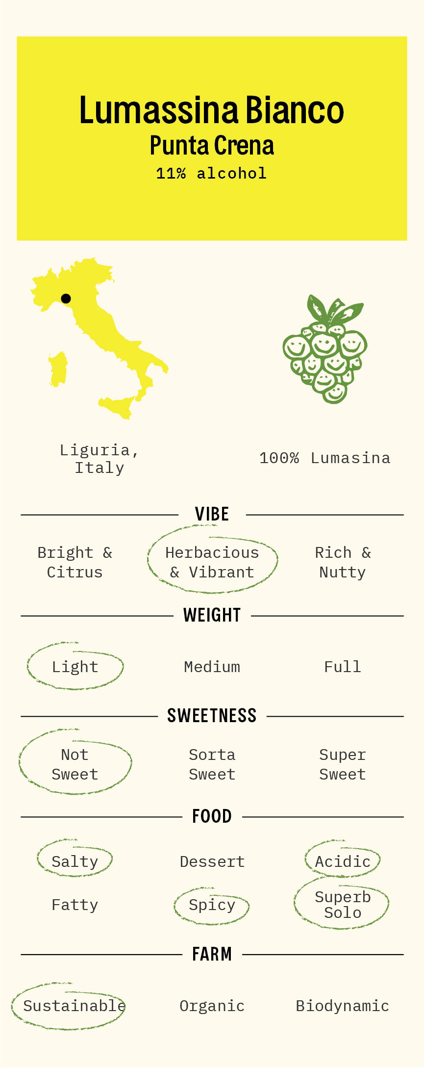 100% Lumasina from Colline Savonesi (Liguria), Italy.