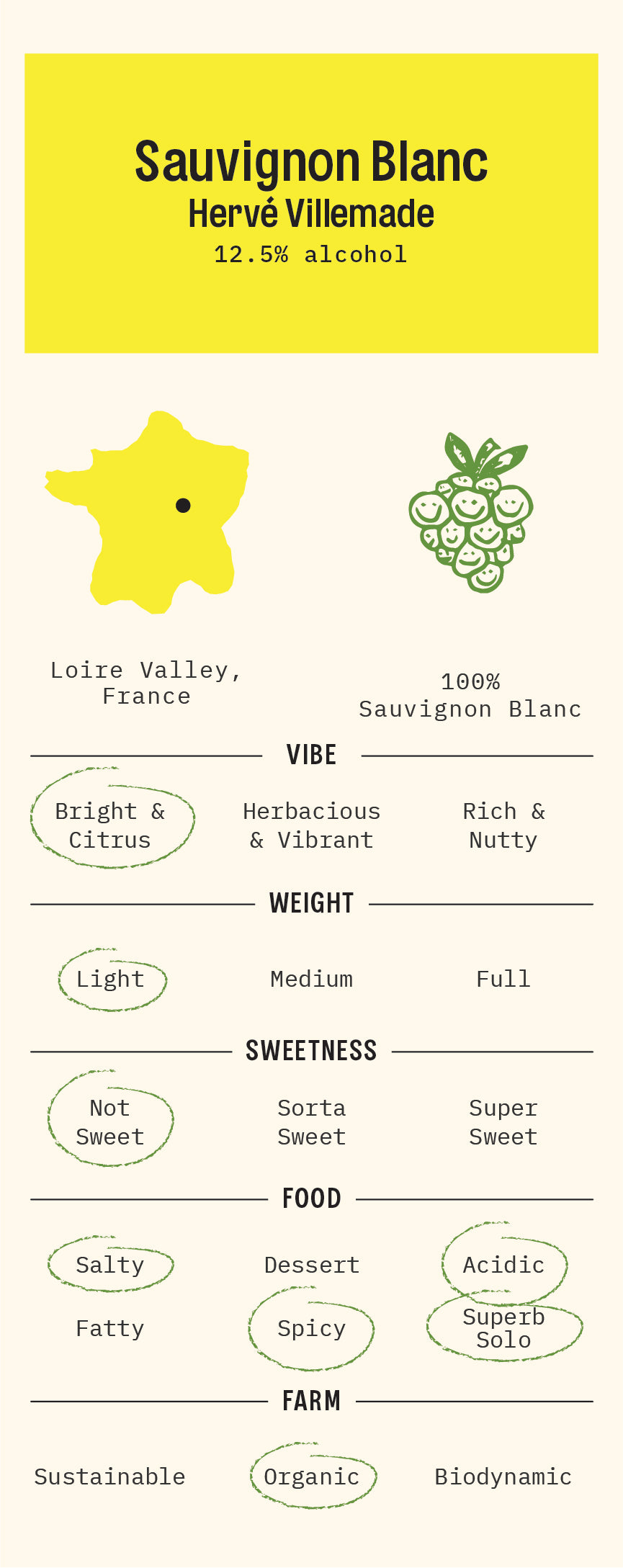 100% Sauvignon Blanc from the Loire, France. Organic.
