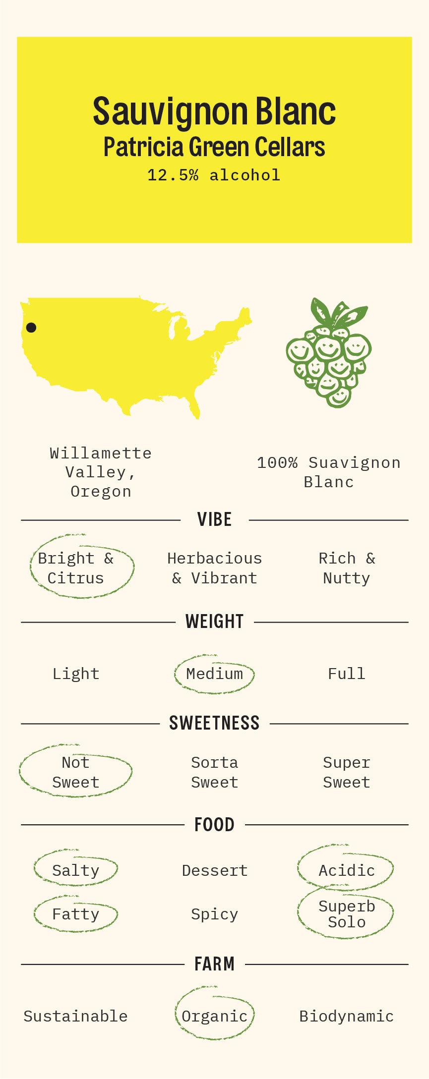 100% Sauvignon Blanc from the Willamette Valley, Oregon. Organic.
